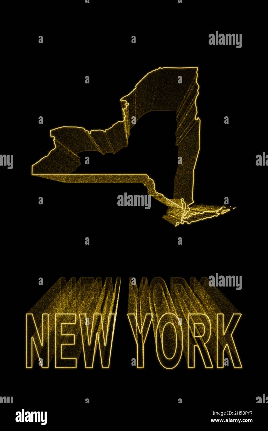 Map of New York, Gold Map On Black Background, Gold effect Stock
