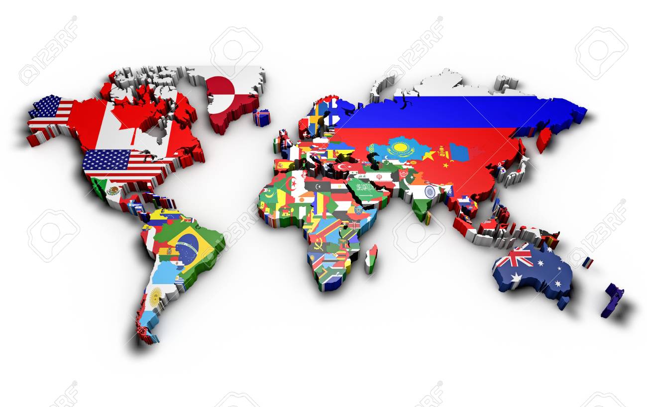 Political Map Of World With Country Flags Stock Photo, Picture and